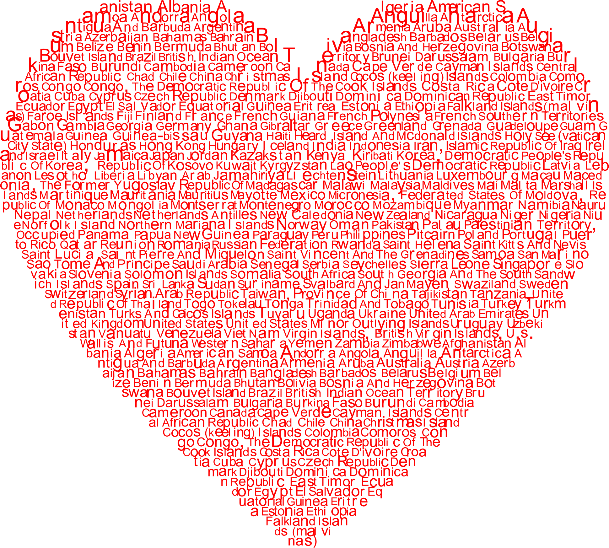 World Countries Heart Typography