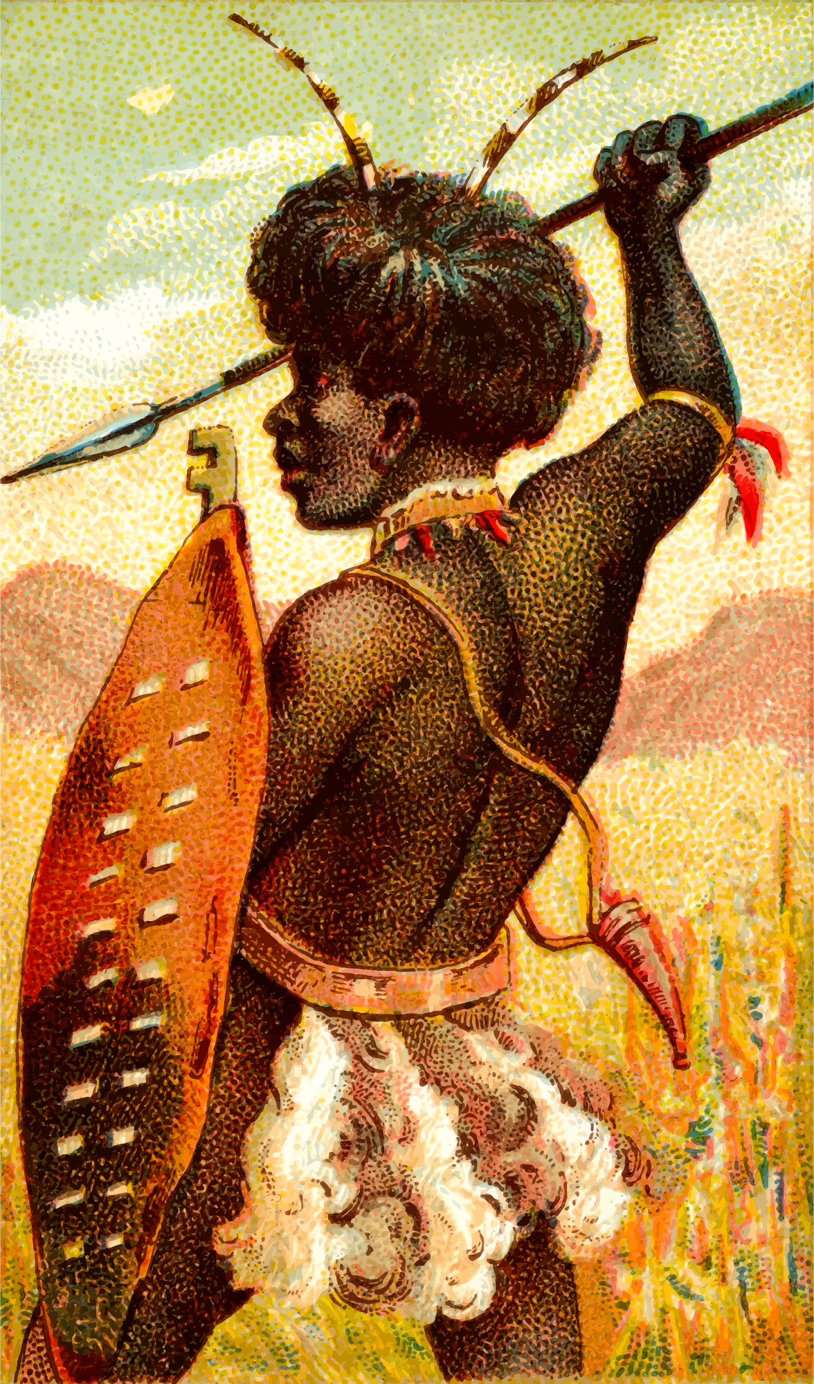 - Allen antique arm armament assegai battle card cigarette collectable Ginter javelin pole Semi-Realistic People spear tobacco trade card trading vintage war warfare weapon wood wooden