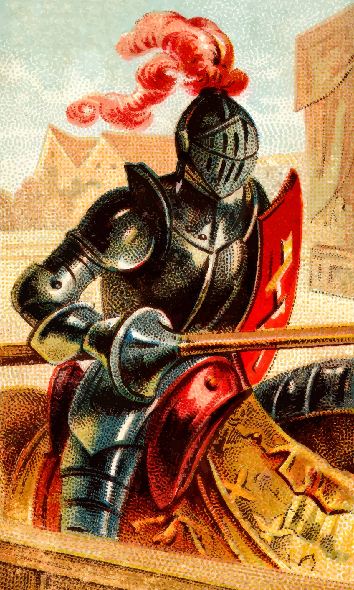 - Allen antique arm armament armor armour battle card cigarette collectable Ginter horse horseback knight lance pole Semi-Realistic People tobacco trade card trading vintage war warfare weapon