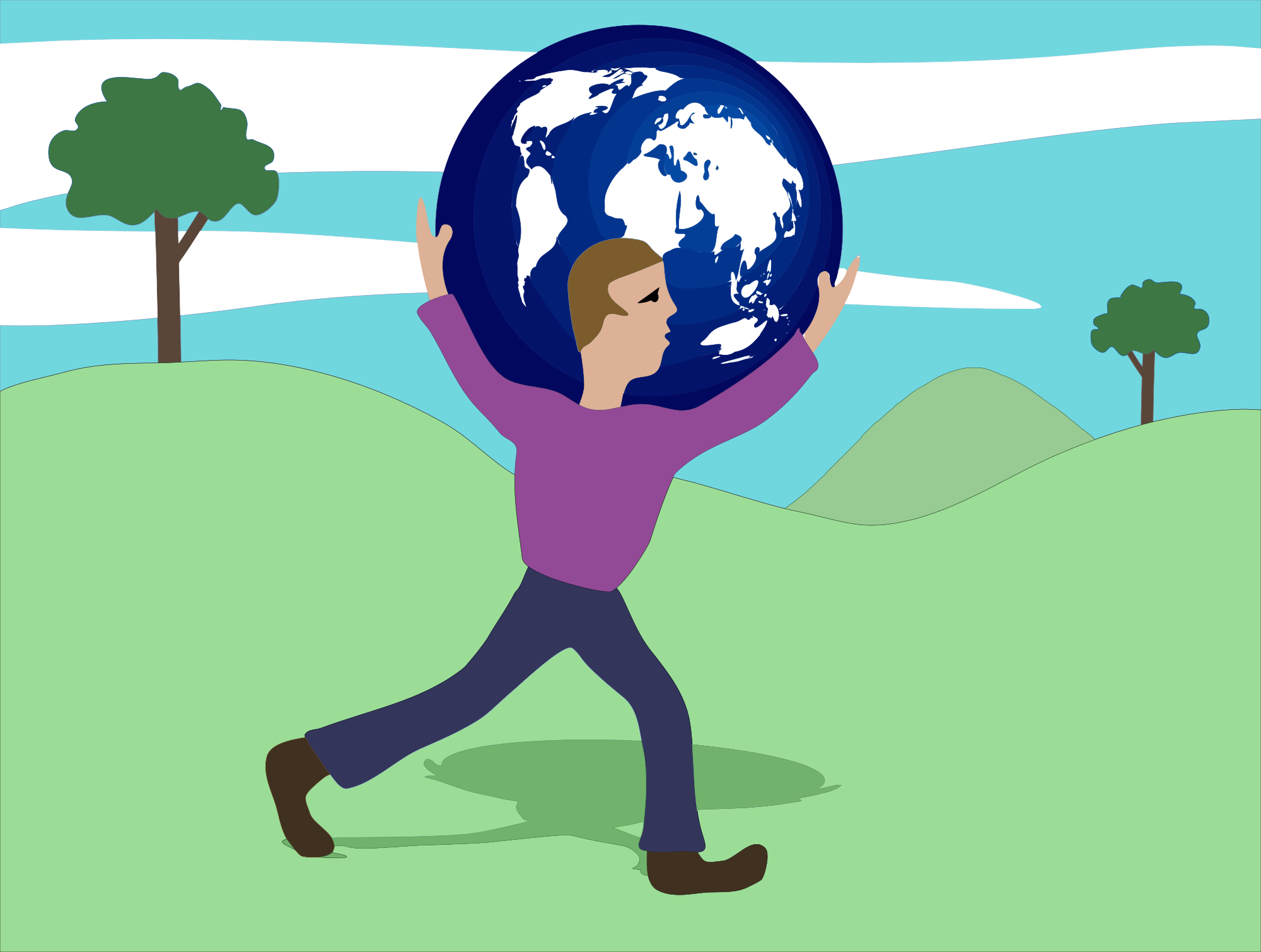 - remix+231902 supporting carrying world earth globe metaphor planet environment friendly ecofriendly hopeful colourful colorful man cartoon earth day