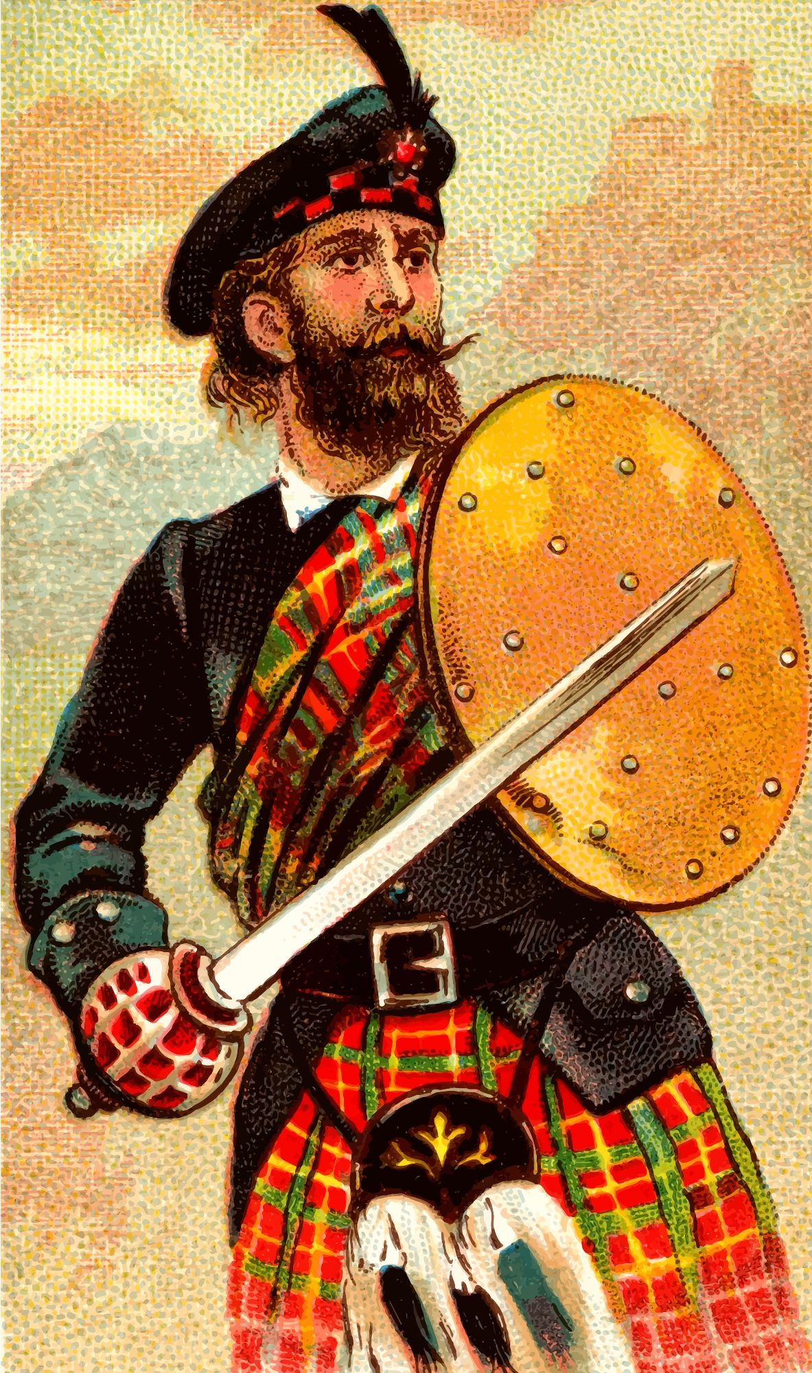 - Allen antique arm armament battle blade card cigarette collectable Ginter tobacco trade card trading vintage war warfare weapon Scotch Scottish Scots claymore sword blade kilt sporran
