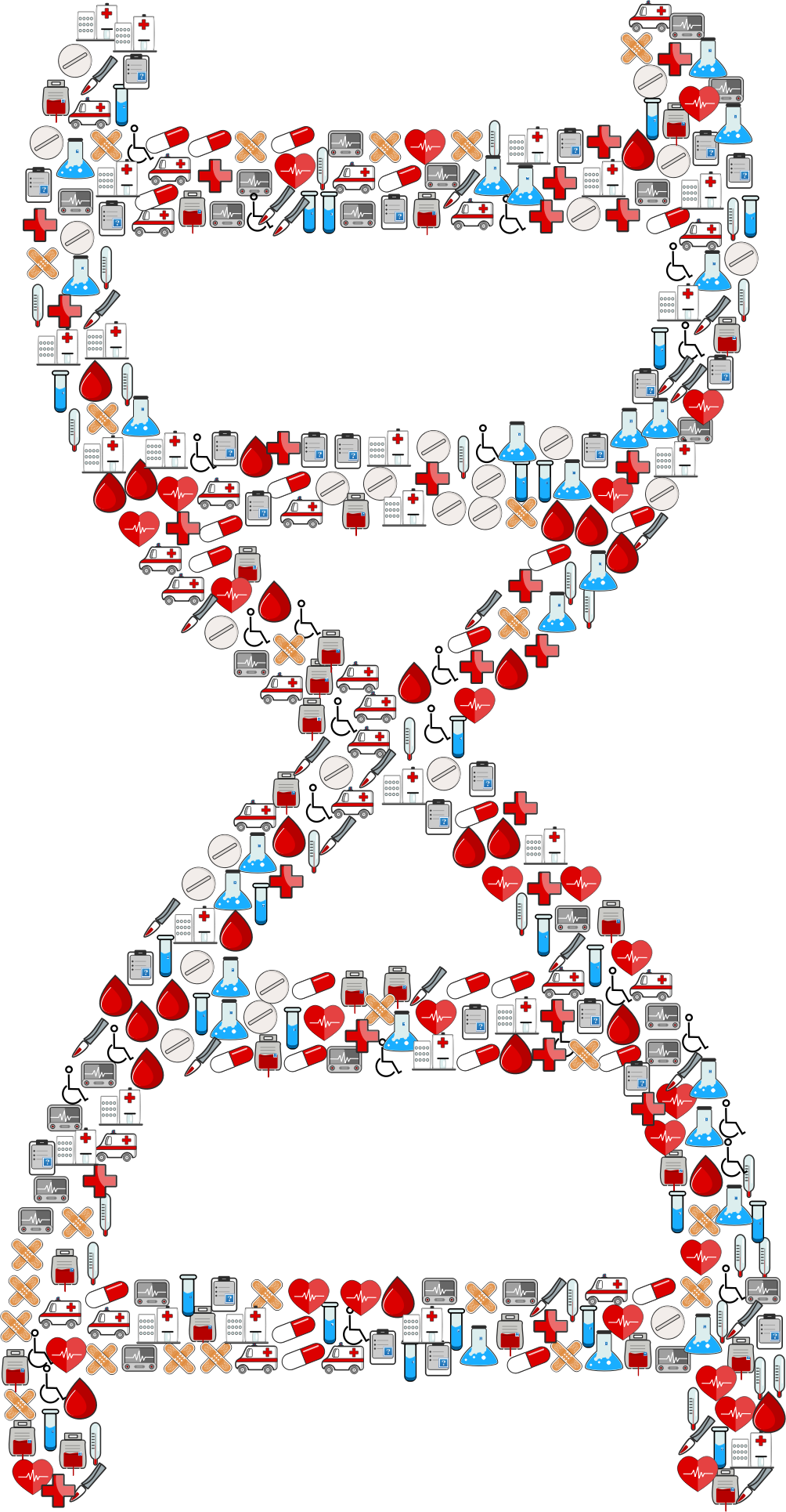- remix+280975 First Aid Medical Medicine Doctor Hospital Clinic Nurse Heart EKG Heartbeat Blood Life Health Handicap Scalpel Tablet Test Tube Ambulance Pill Bandage Thermometer Icons Abstract Art DNA Deoxyribonucleic Acid Molecules Molecular Biology Science Research Cellular