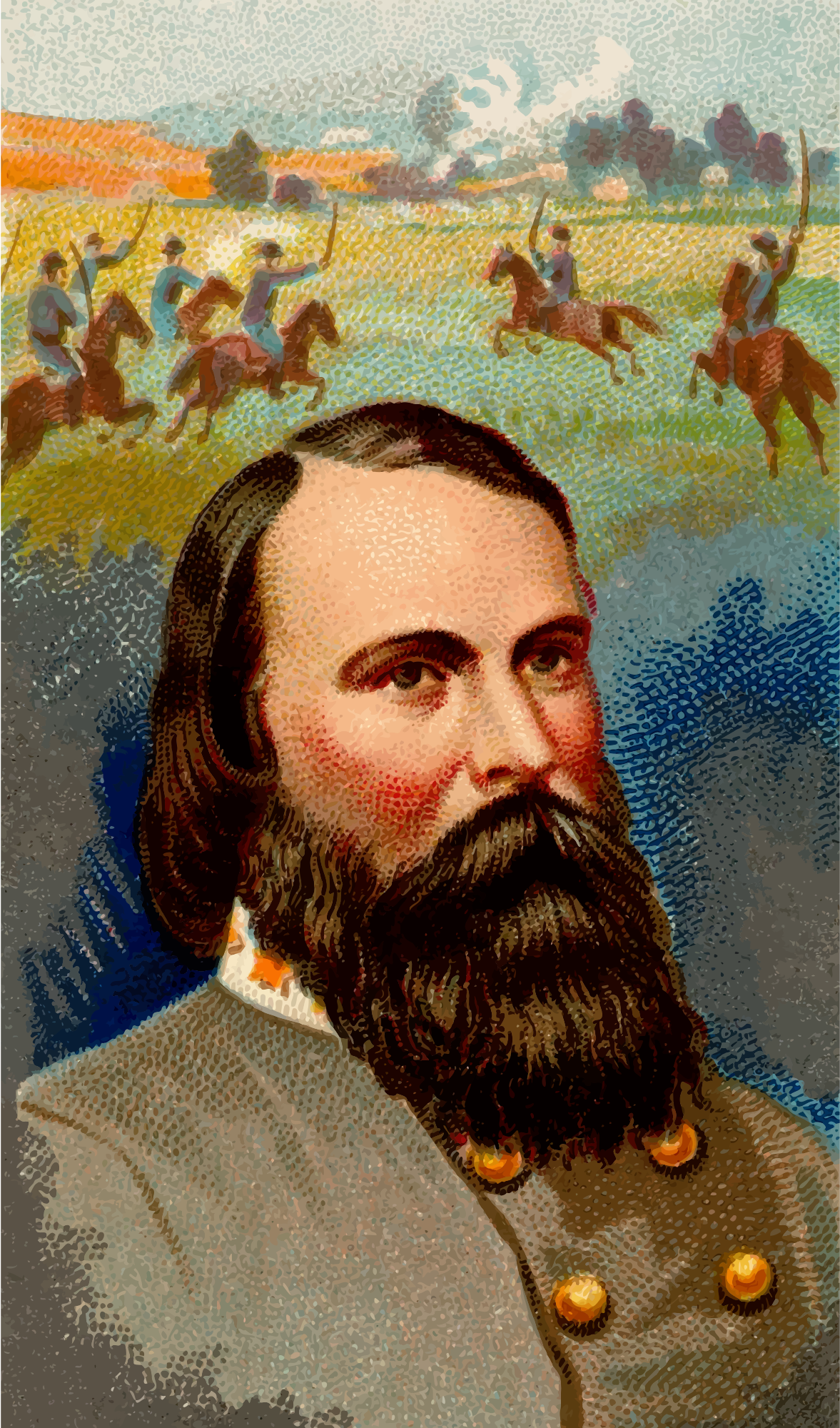 One of the "Great Generals" series of cigarette cards from Allen & Ginter, late 1800s. Due to their age I have done a little restoration where needed and also cropped them to just the picture, adjusted contrast, brightness and colour saturation. The originals can be found on the New York Metropolitan Museum of Art web site