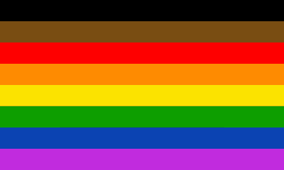 The rainbow gay pride flag with added black and brown stripes for black and brown LGBT people. #MoreColorMorePride