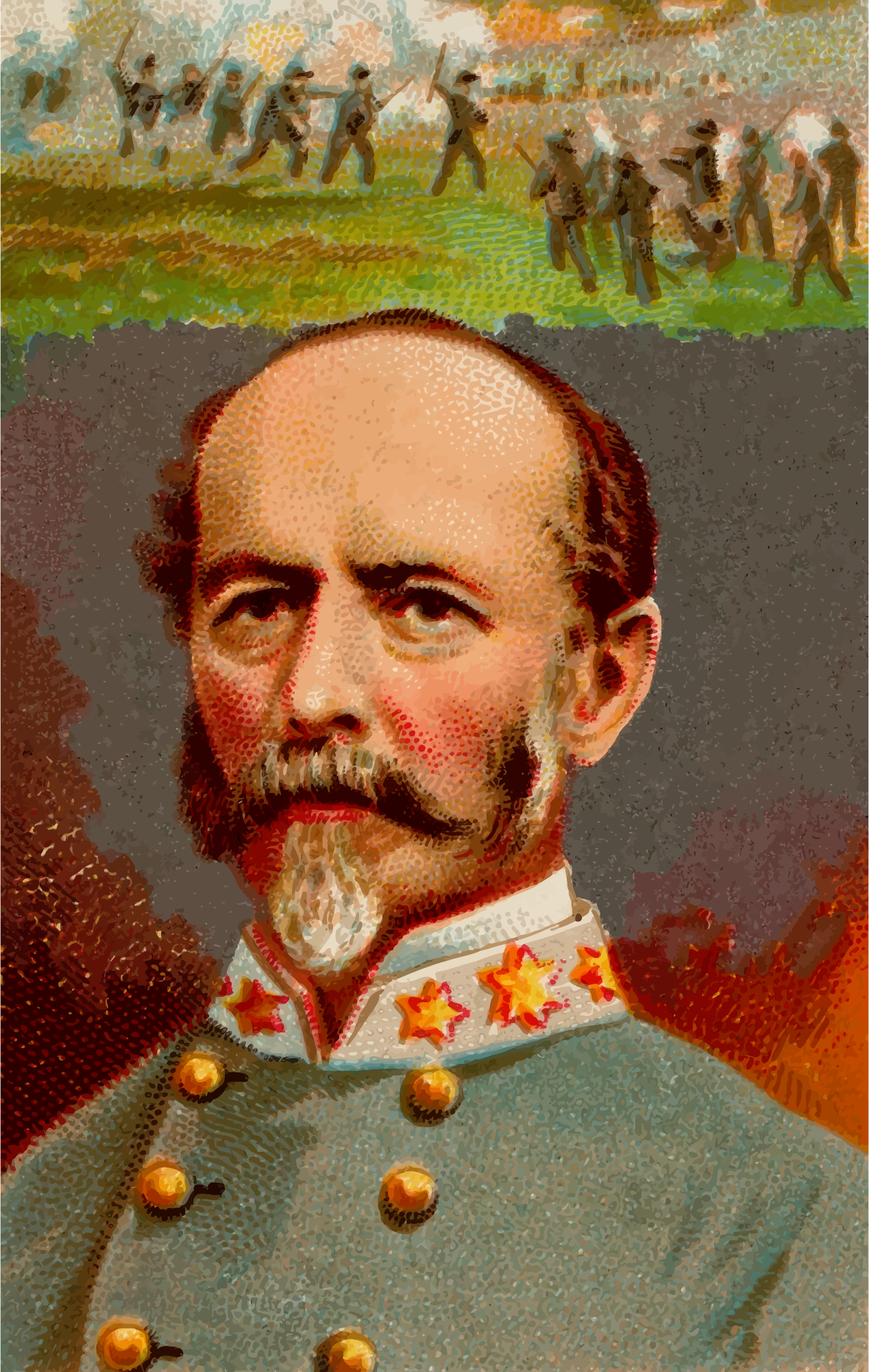 One of the "Great Generals" series of cigarette cards from Allen & Ginter, late 1800s. Due to their age I have done a little restoration where needed and also cropped them to just the picture, adjusted contrast, brightness and colour saturation. The originals can be found on the New York Metropolitan Museum of Art web site.