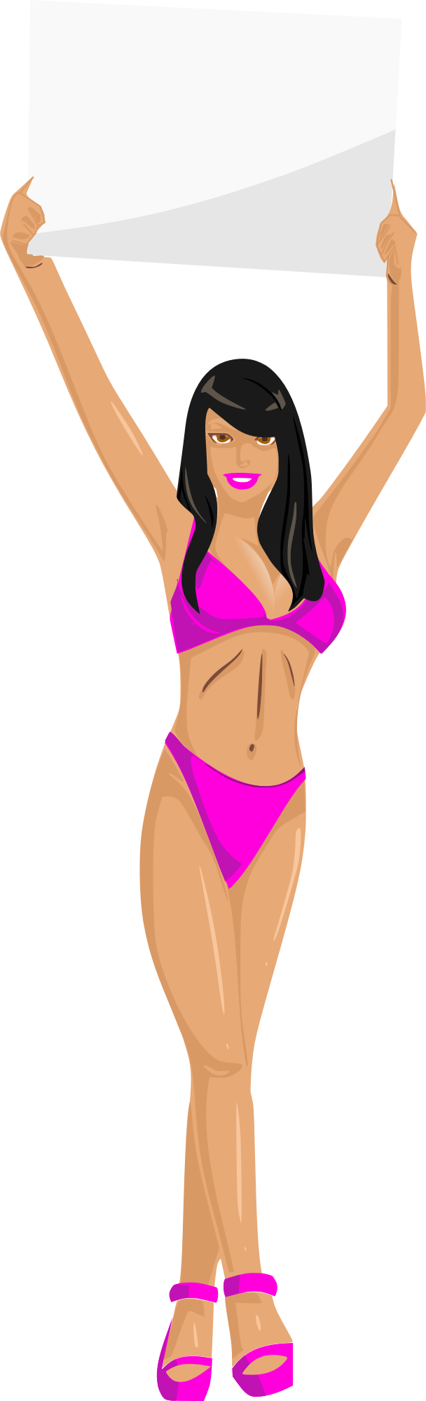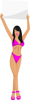 Girl with sign (pink bikini, black hair, light skin)