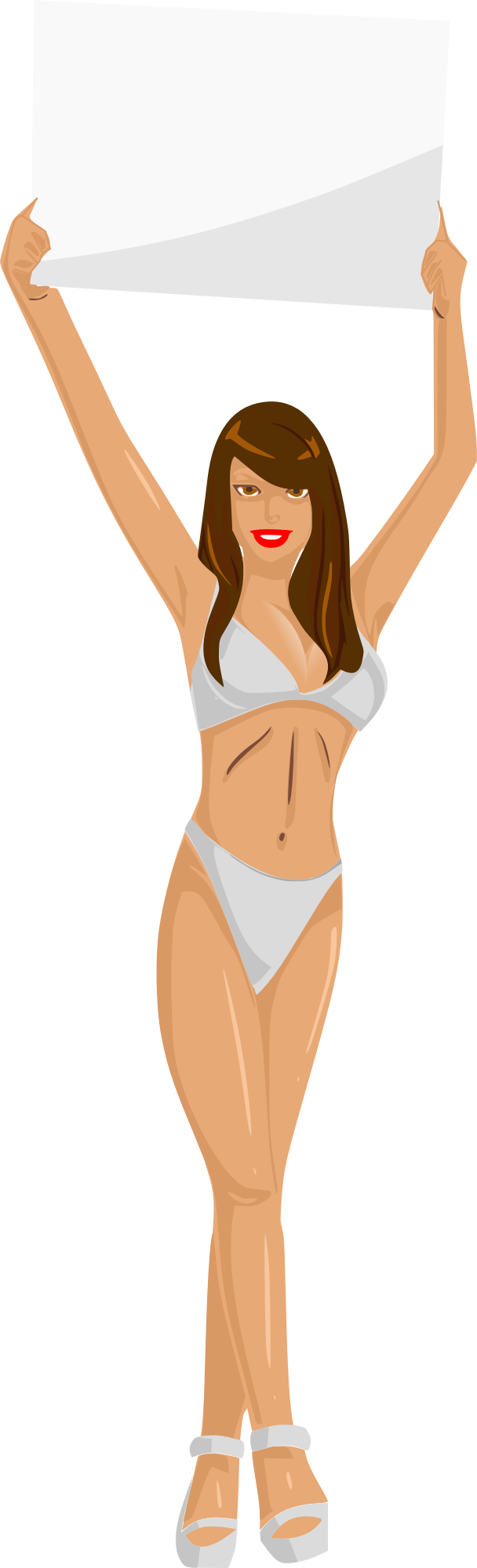Girl with sign (white bikini, brown hair, light skin)