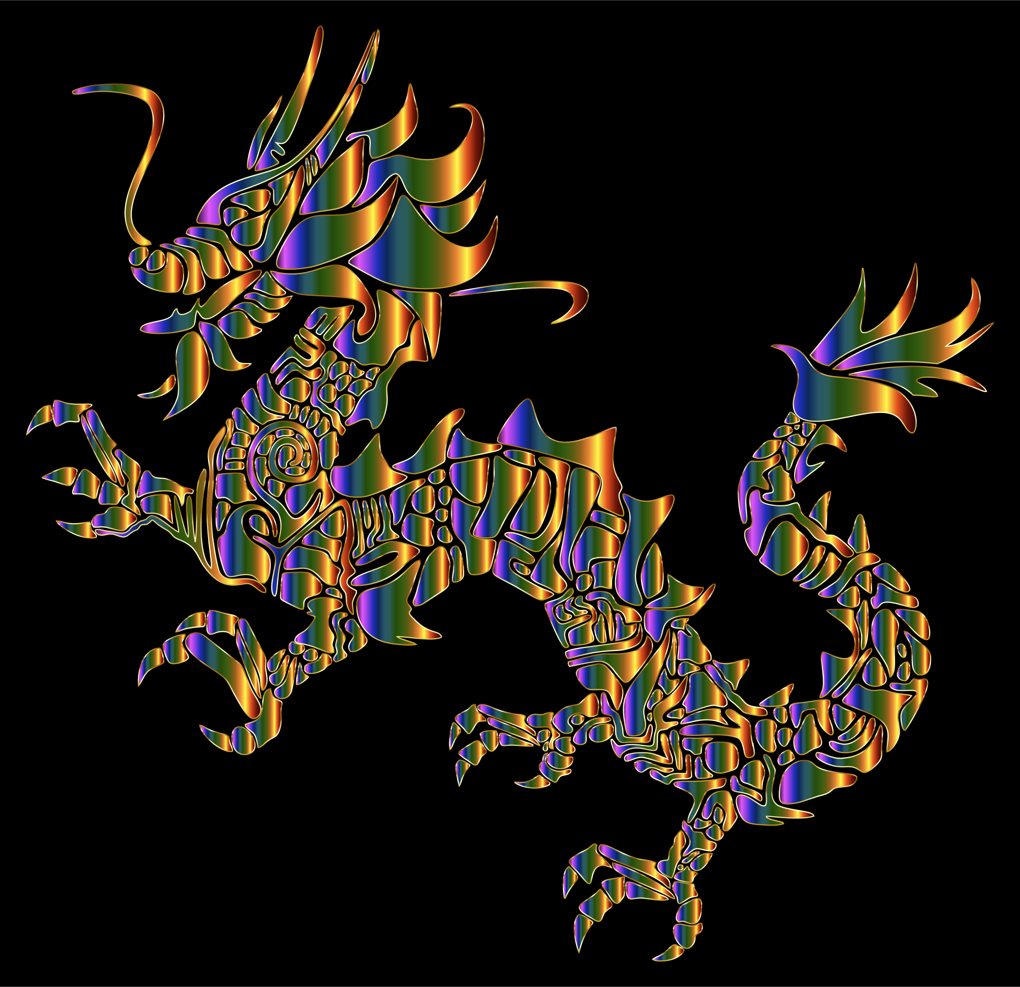 Chromatic Tribal Asian Dragon Silhouette
