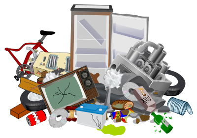 Pile of mixed garbage - old electronics, scrap metal, mouldy food, leaking car battery, cans etc. The worst sort of "common" waste.