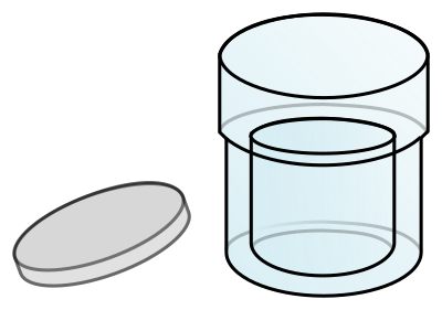 plastic Marinelli beaker (“well-bottom” container) used for gammaspectrometry measurements in a laboratory. The central hollow tube projecting from the bottom is used to position the container on a detector.