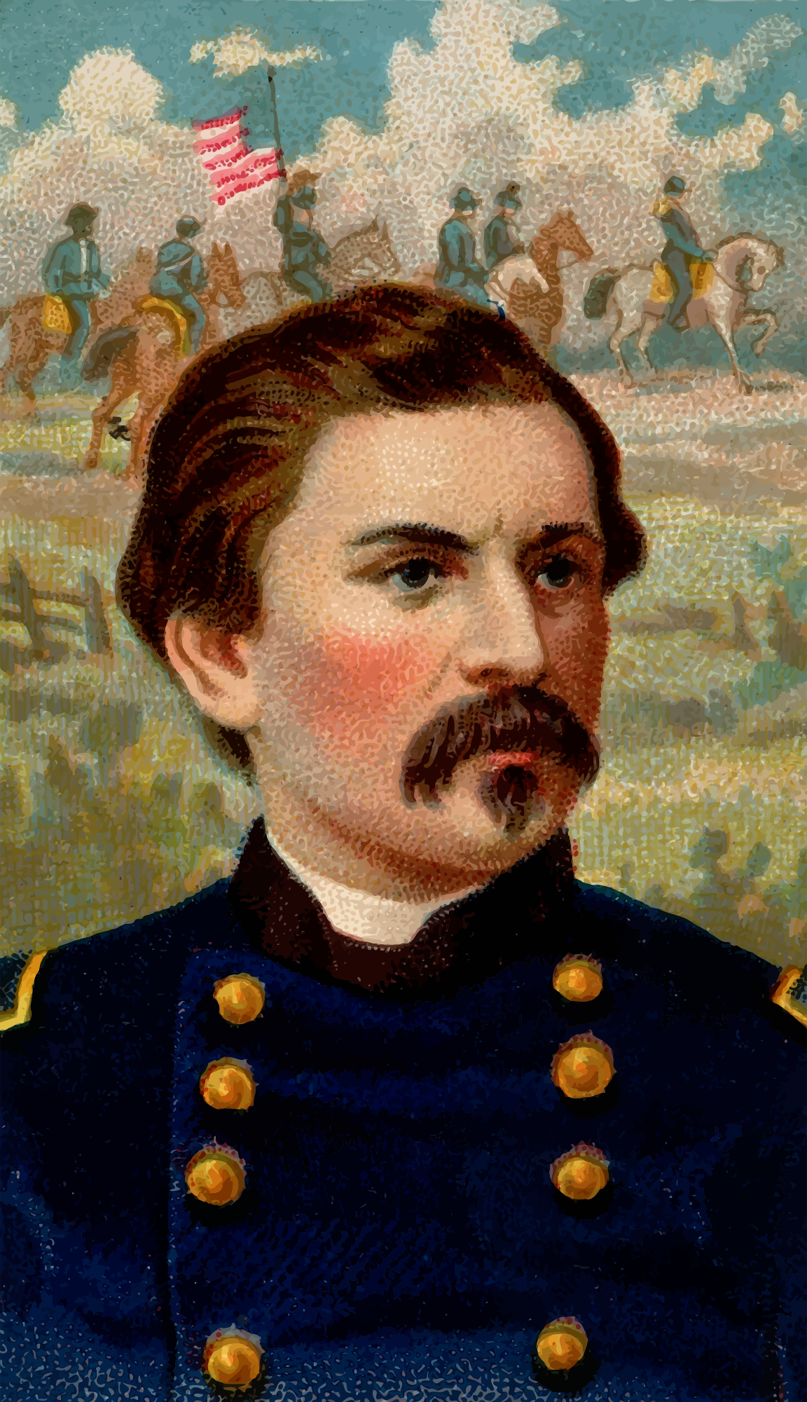 One of the "Great Generals" series of cigarette cards from Allen & Ginter, late 1800s. Due to their age I have done a little restoration where needed and also cropped them to just the picture, adjusted contrast, brightness and colour saturation. The originals can be found on the New York Metropolitan Museum of Art web site.