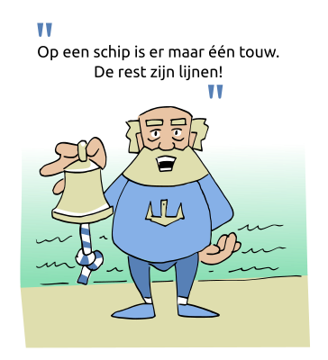 A little cartoon of a fisherman I encountered some years ago saying "There is only one rope on a ship, the rest are lines..." (Feel free to suggest better translations)