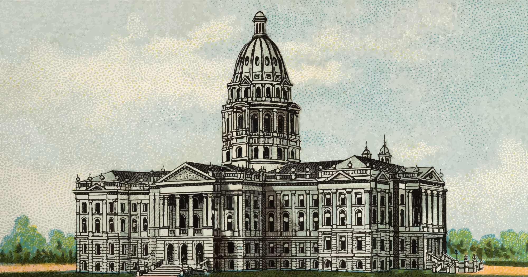 One of the "General Government and State Capitol Buildings" series of cigarette cards from Allen & Ginter, late 1800s. Due to their age I have done a little restoration where needed and also cropped them to just the picture, adjusted contrast, brightness and colour saturation. The originals can be found on the New York Metropolitan Museum of Art web site.