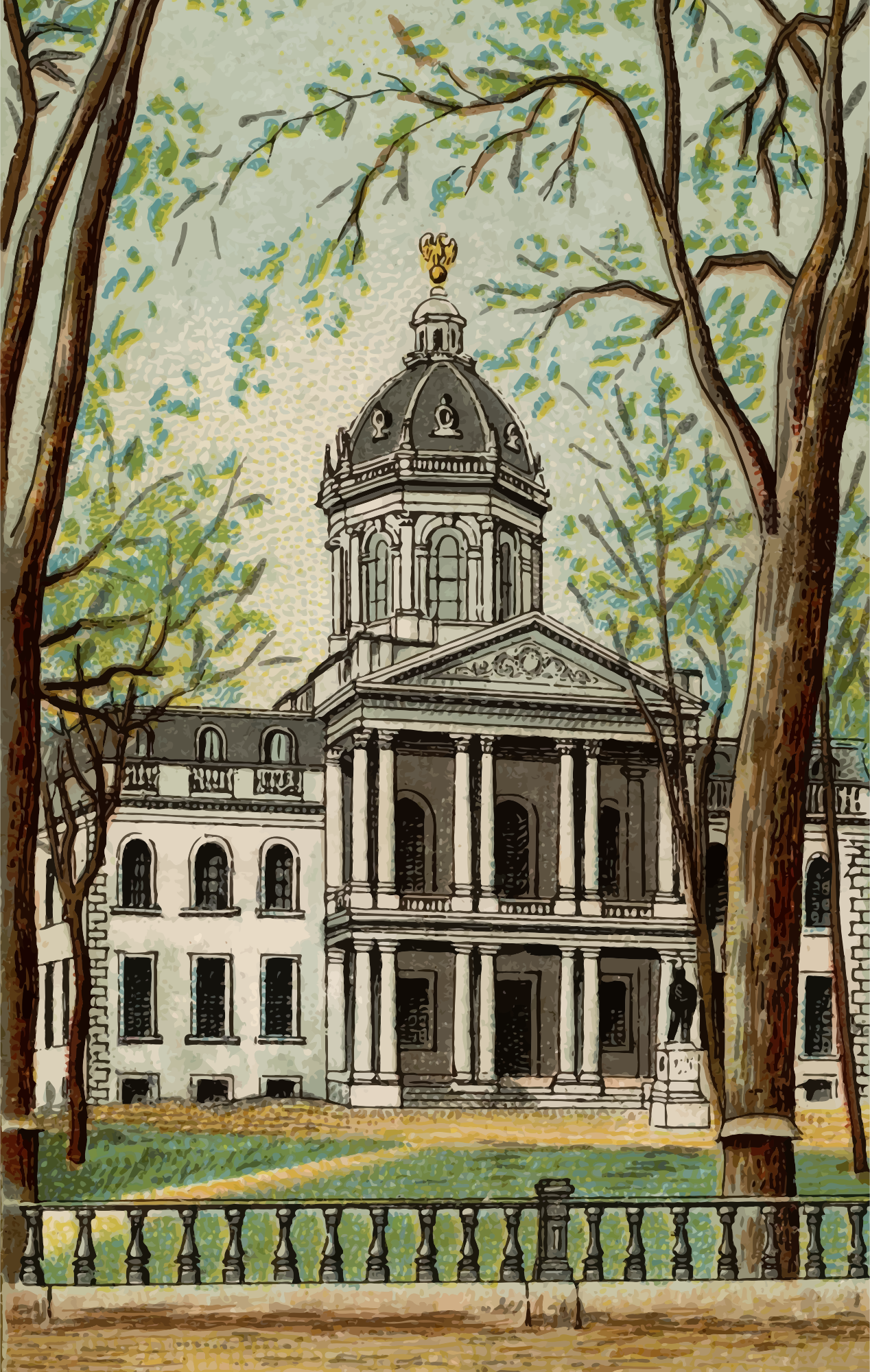 One of the "General Government and State Capitol Buildings" series of cigarette cards from Allen & Ginter, late 1800s. Due to their age I have done a little restoration where needed and also cropped them to just the picture, adjusted contrast, brightness and colour saturation. The originals can be found on the New York Metropolitan Museum of Art web site.