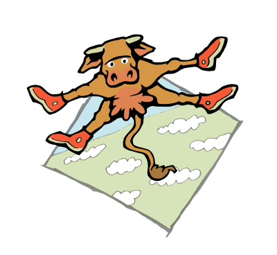 A flying cow wearing sneakers.