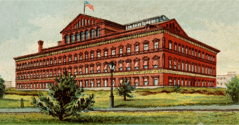 One of the "General Government and State Capitol Buildings" series of cigarette cards from Allen & Ginter, late 1800s. Due to their age I have done a little restoration where needed and also cropped them to just the picture, adjusted contrast, brightness and colour saturation. The originals can be found on the New York Metropolitan Museum of Art web site.