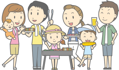 - backyard barbecue barbeque bbq Comic characters corn drink Familie family grill happy kebabs roast Semi-Realistic People summer tongs mother father children child baby man woman male female lady men males women females ladies girl boy baby