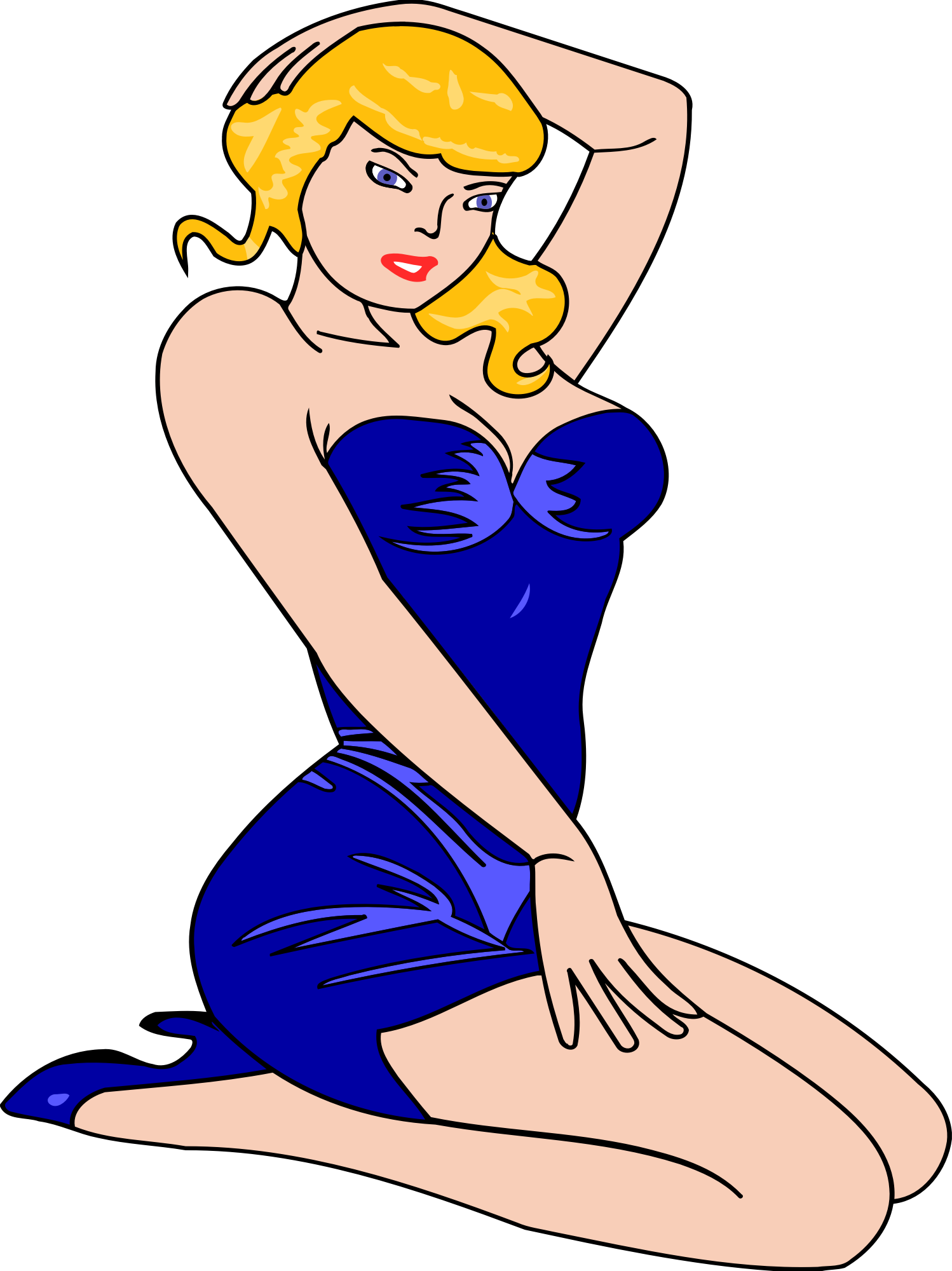 Woman kneeling (light skin, blue dress, red hair)