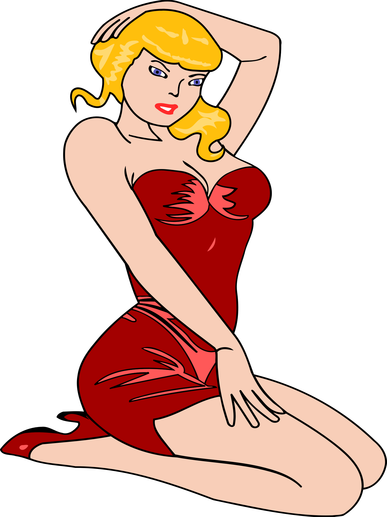 Woman kneeling (light skin, red dress, red hair)