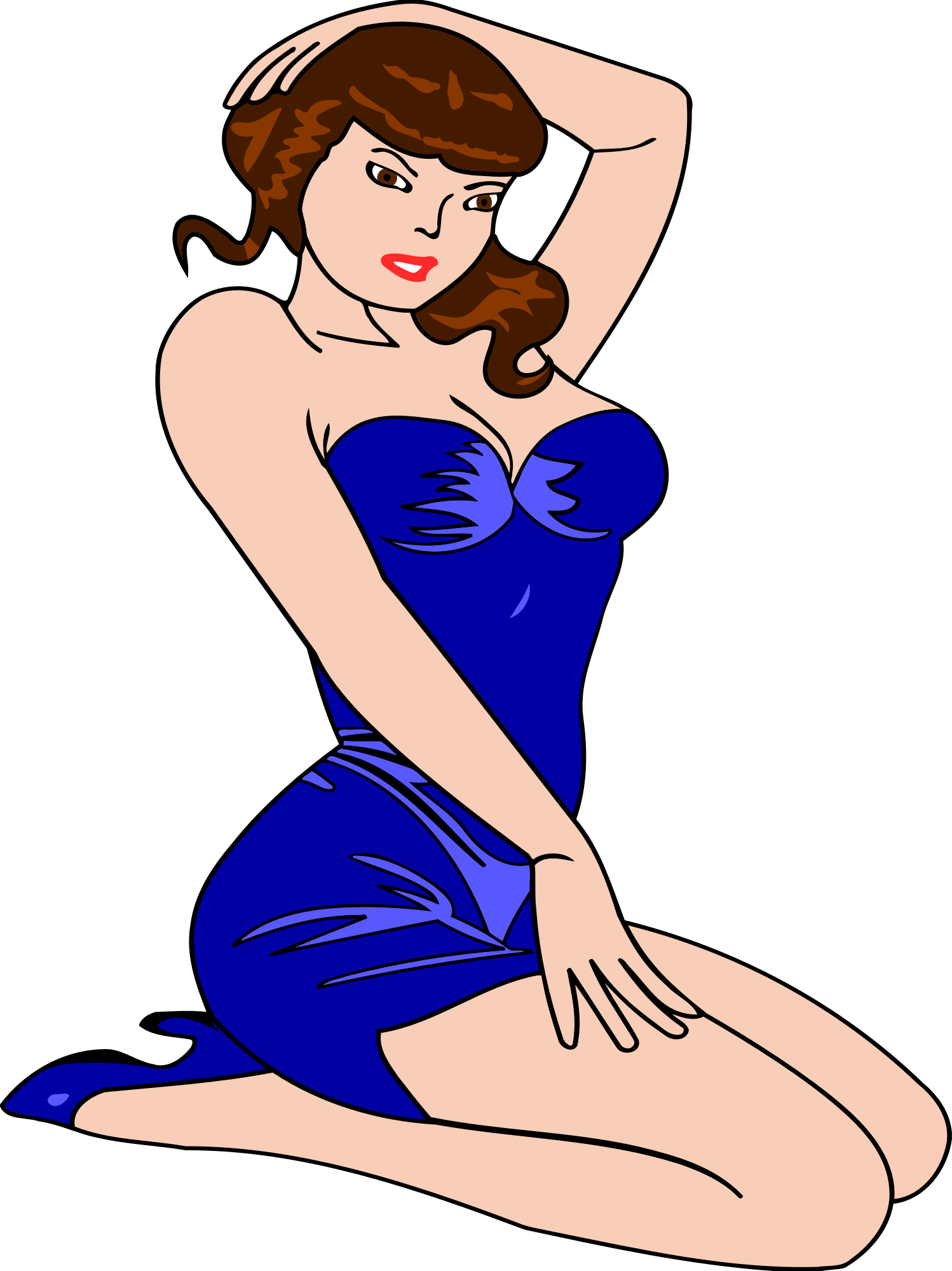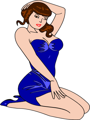 Woman kneeling (light skin, blue dress, red hair)