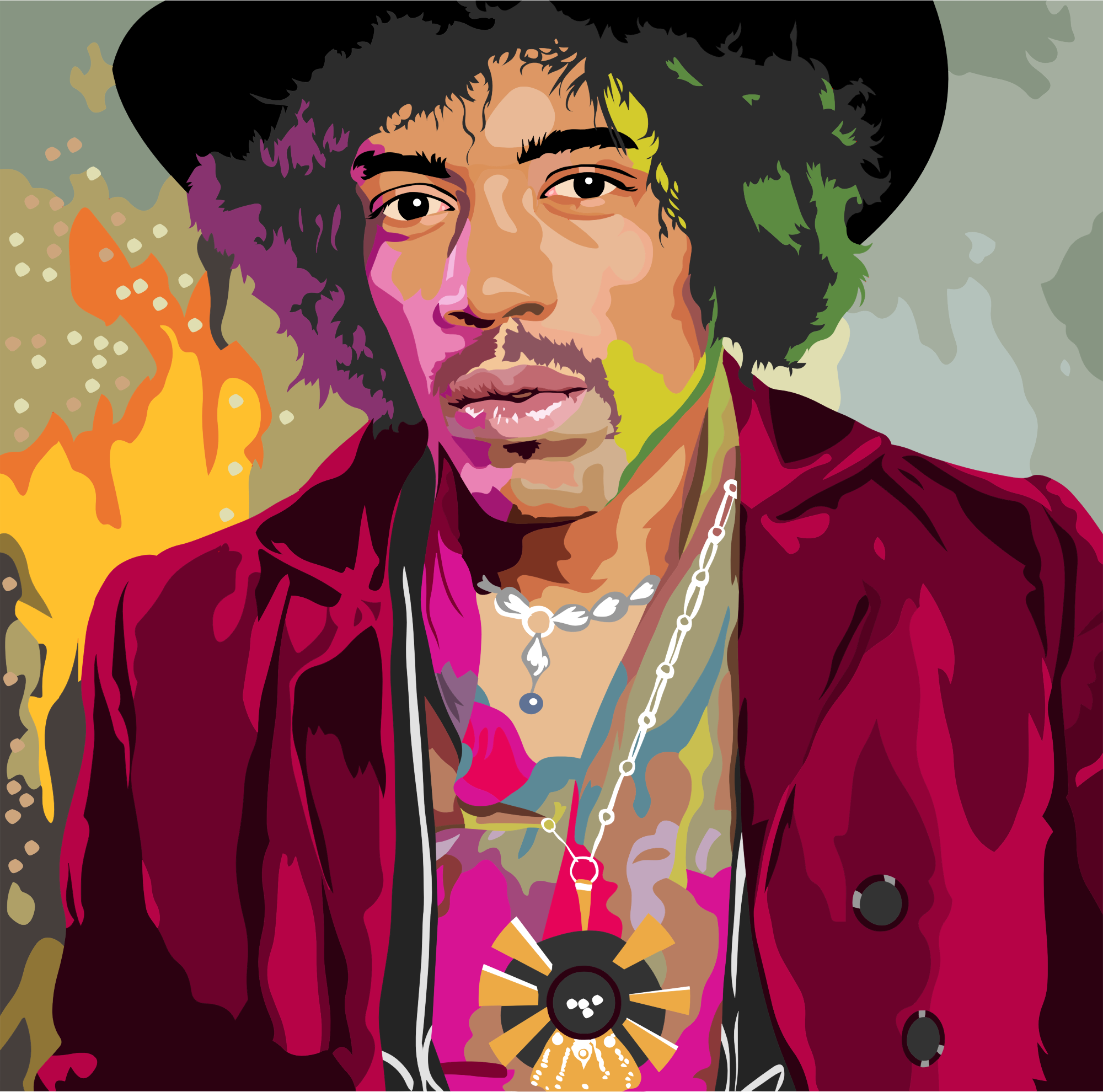 Colorful Jimi Hendrix Portrait By Heblo from Pixabay.