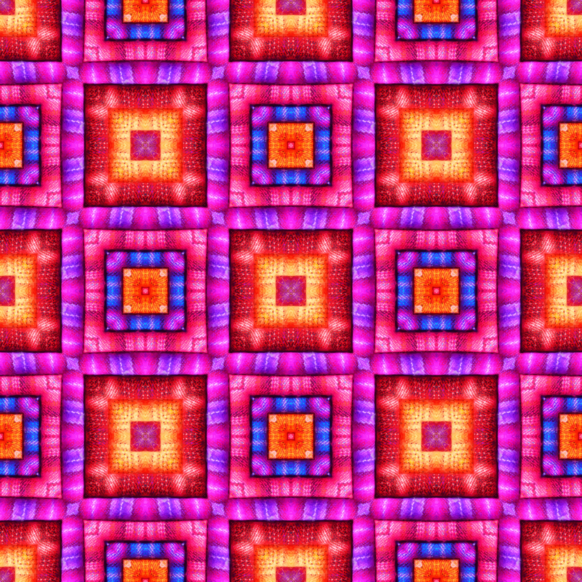 Not a pattern for fabrics, but one produced from a jpg of a stack of fabric items that was posted on Pixabay. The tile that this is based on can be had by selecting the rectangle in Inkscape and using shift+alt+i.