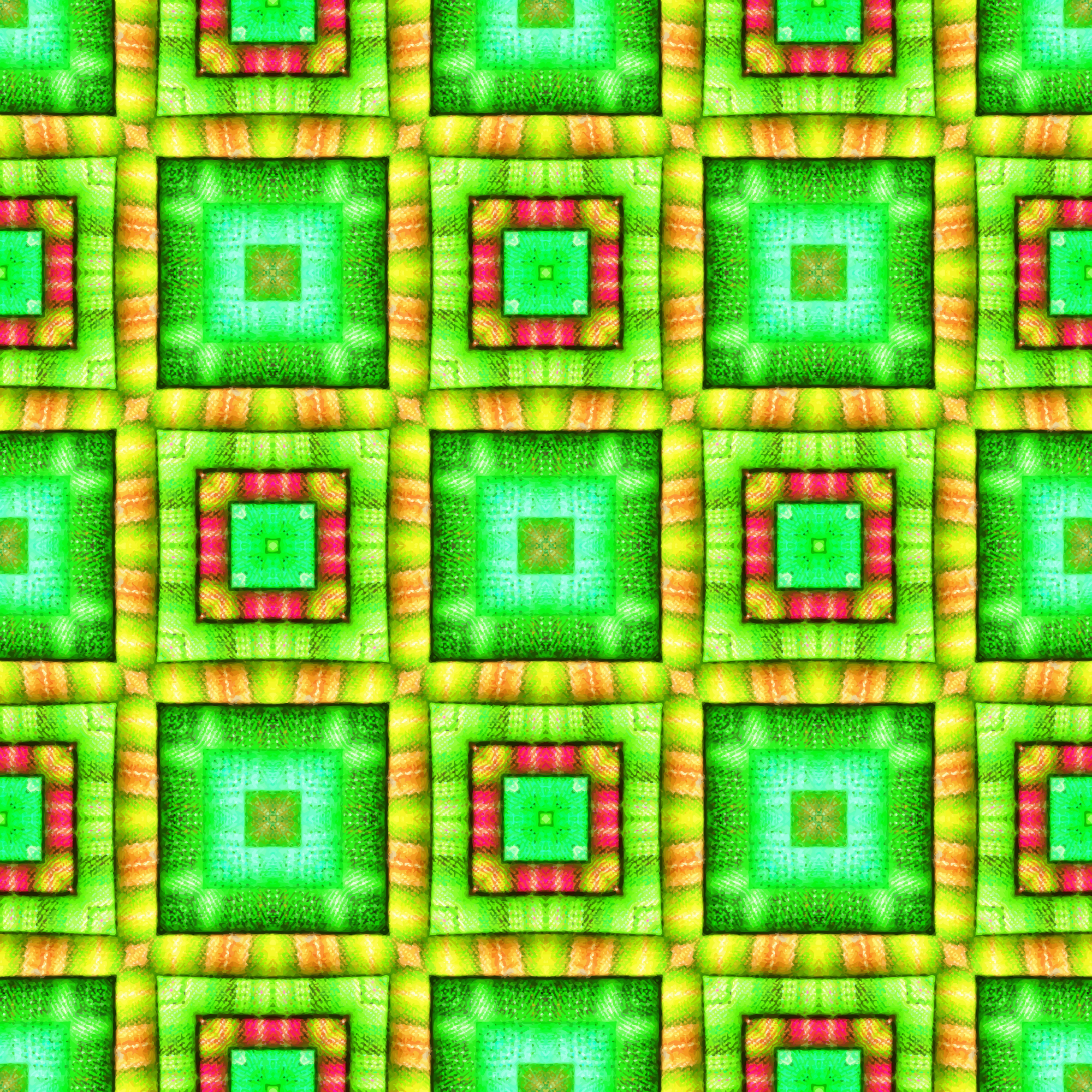 Alternative colour scheme. Not a pattern for fabrics, but one produced from a jpg of a stack of fabric items that was posted on Pixabay. The tile that this is based on can be had by selecting the rectangle in Inkscape and using shift+alt+i.
