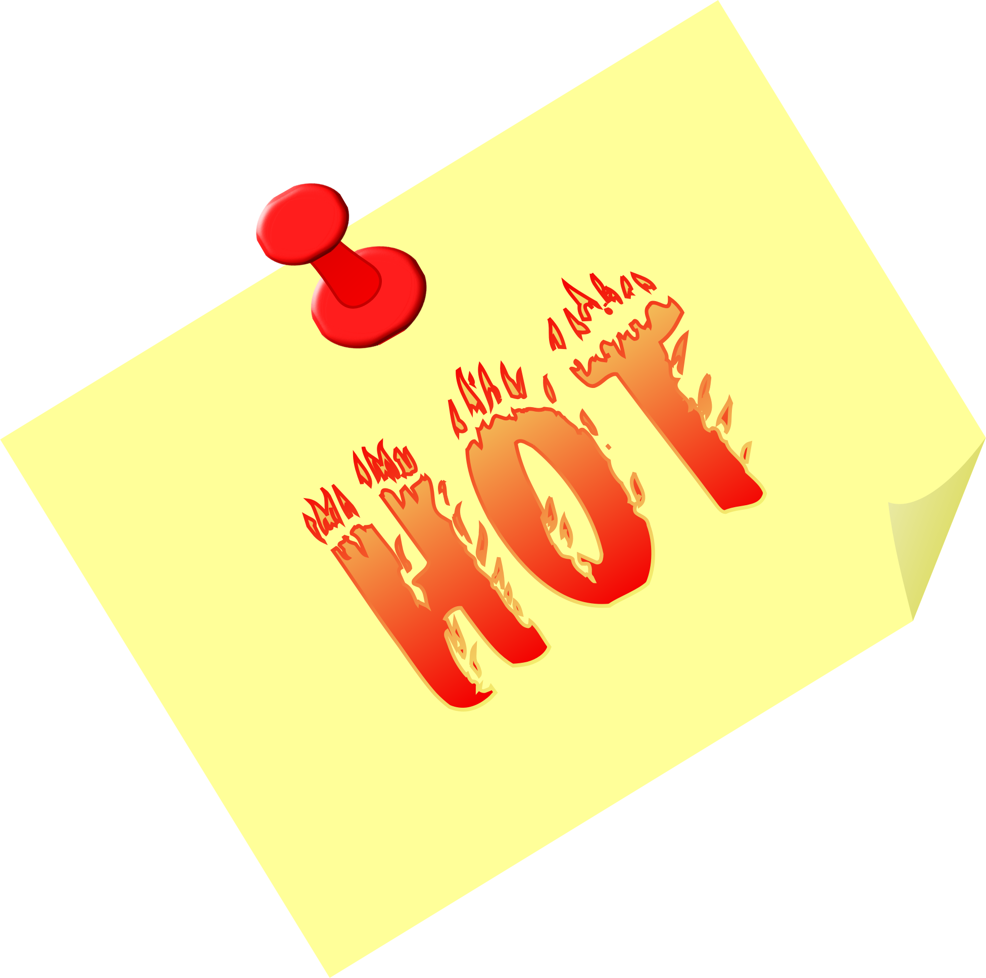 "sticky note" with the expression 'Hot' and a red push-pin