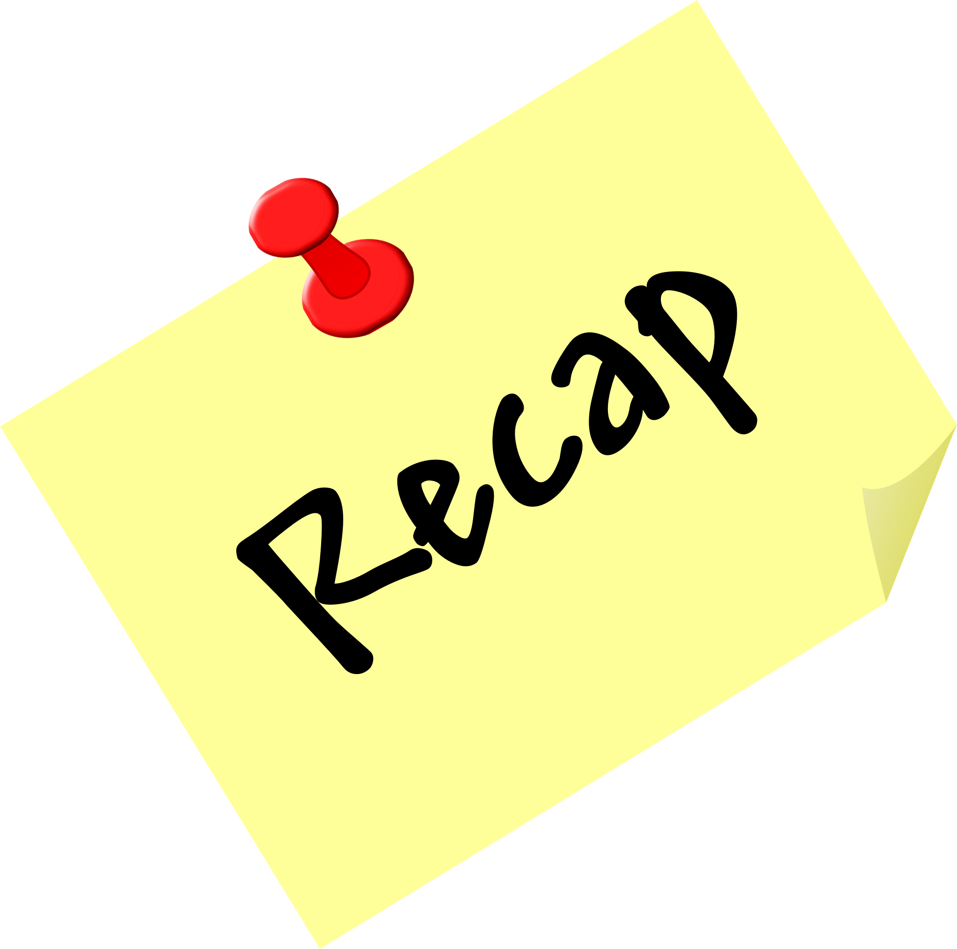 "sticky note" with the word 'Recap' and a read push-pin