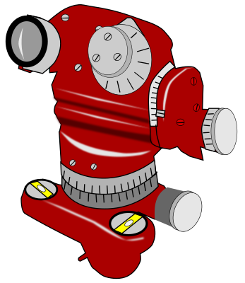 Older model theodolite for doing surveying. This one is an analog model. Recent models are digital.