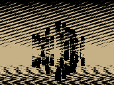 A still image of a reflection, with an animated halftone filter atop.