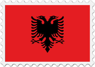 The national flag of Albania with a postage stamp border