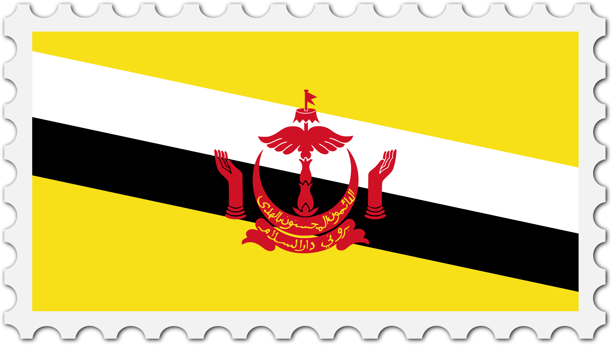 The national flag of Brunei with a postage stamp border