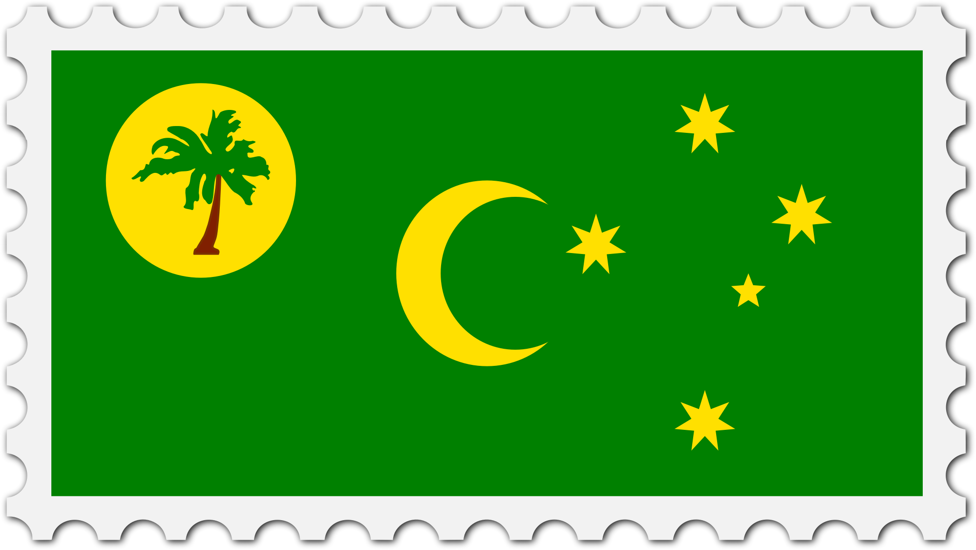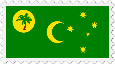 The national flag of Cocos Island with a postage stamp border