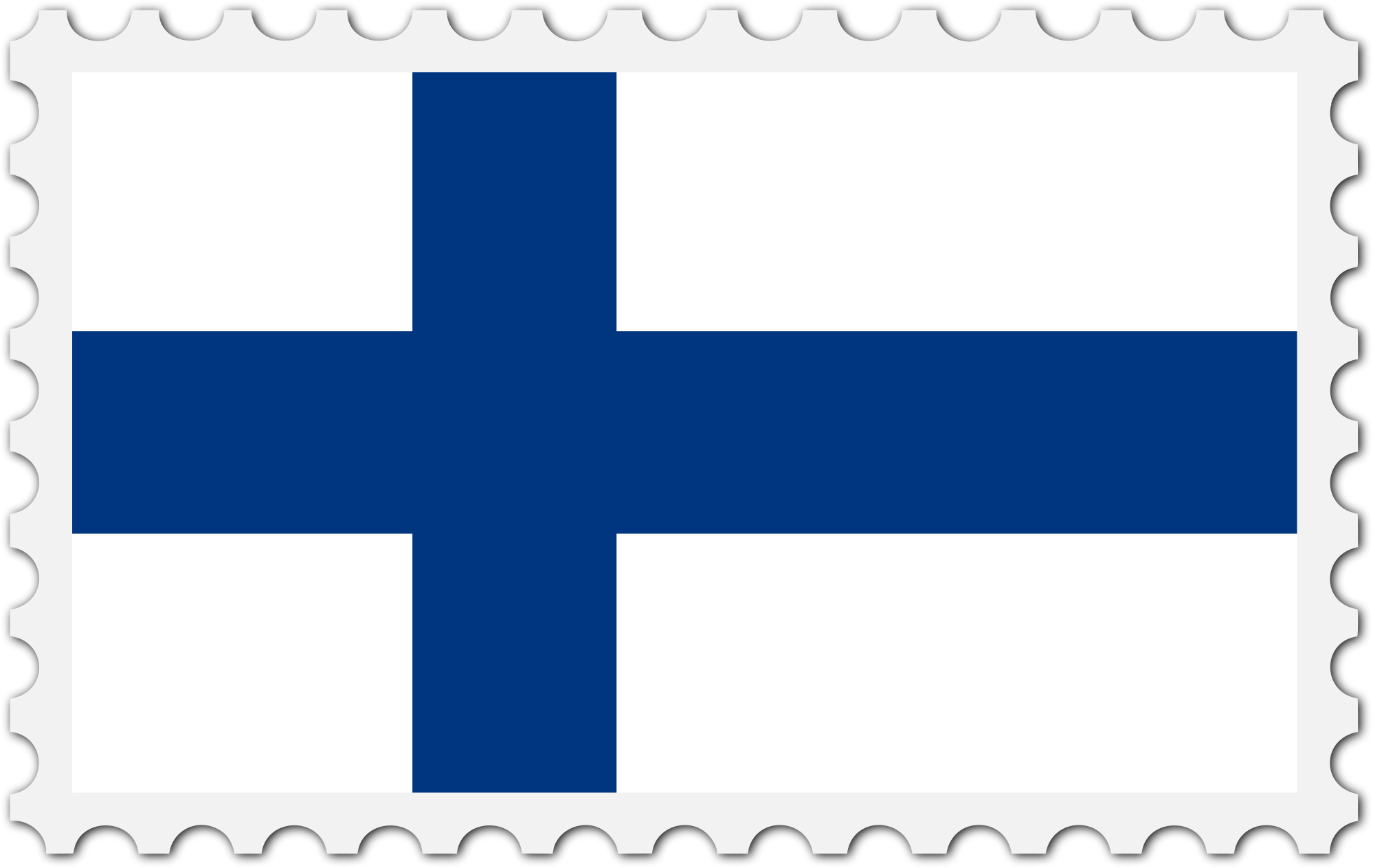 The national flag of Finland with a postage stamp border