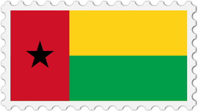 The national flag of Guinea Bissau with a postage stamp border