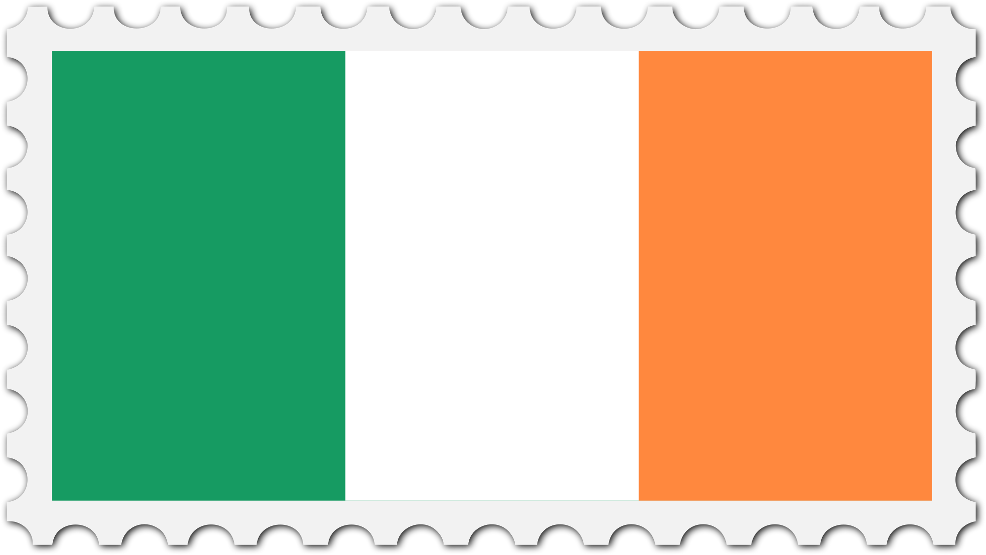The national flag of Ireland with a postage stamp border