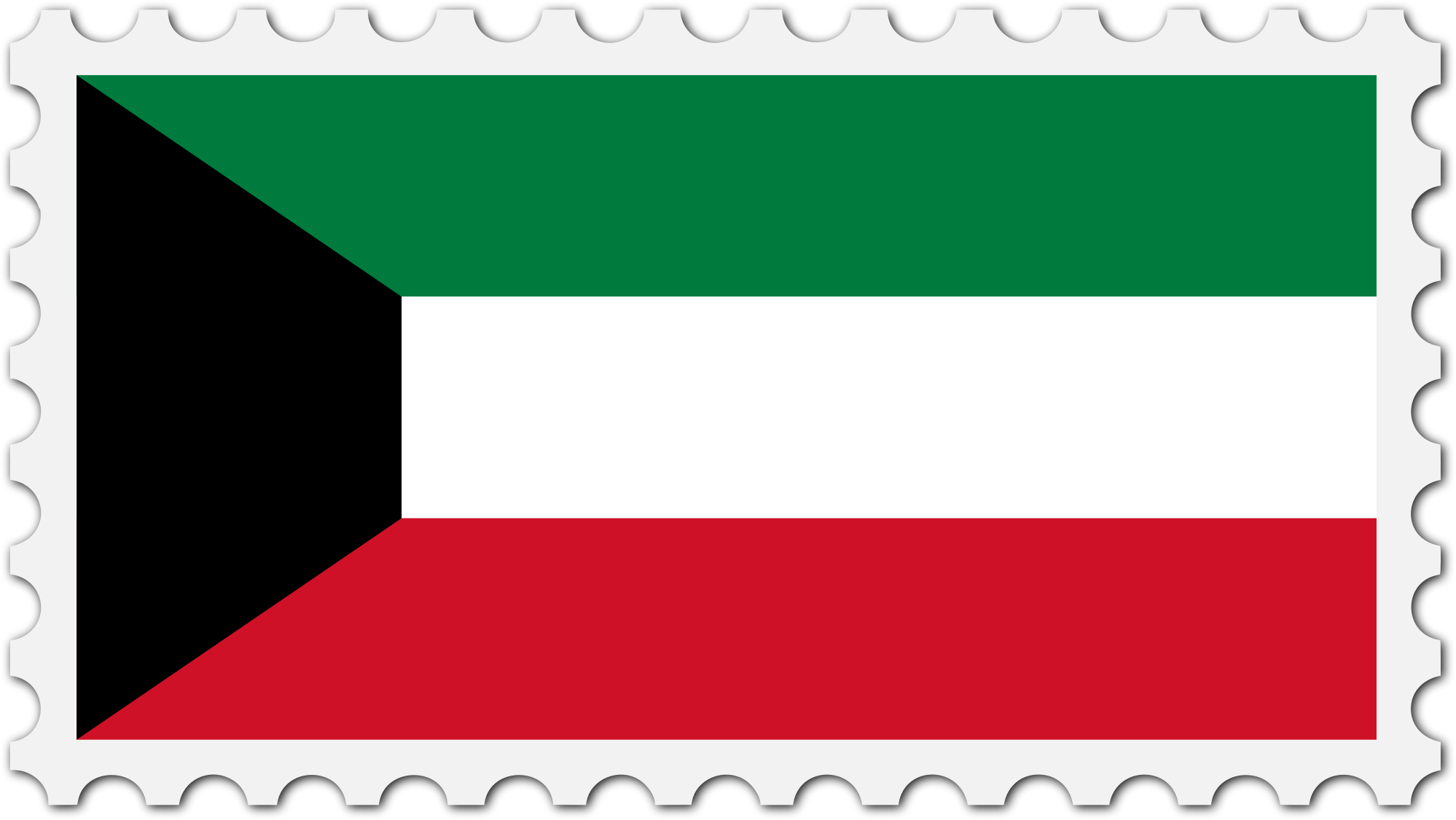 The national flag of Kuwait with a postage stamp border