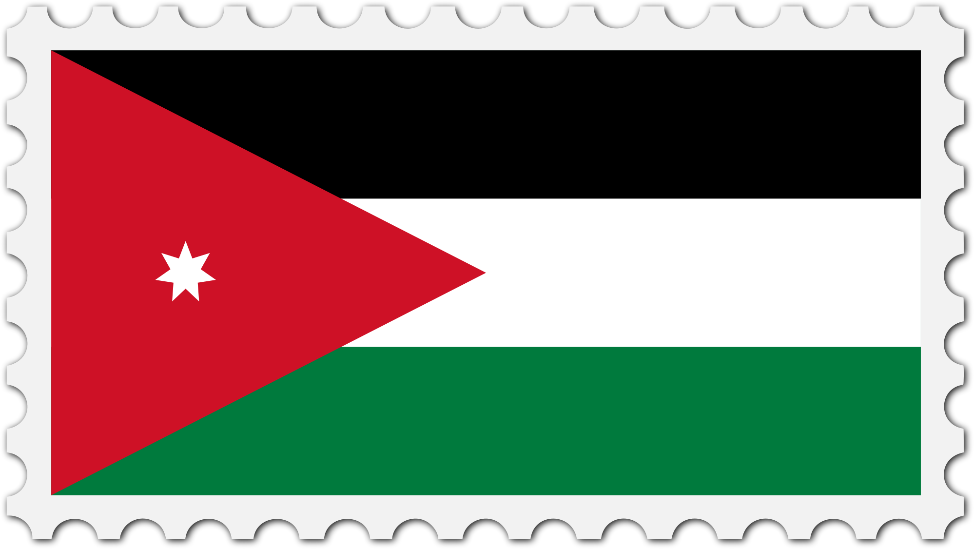 The national flag of Jordan with a postage stamp border