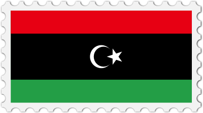 The national flag of Libya with a postage stamp border