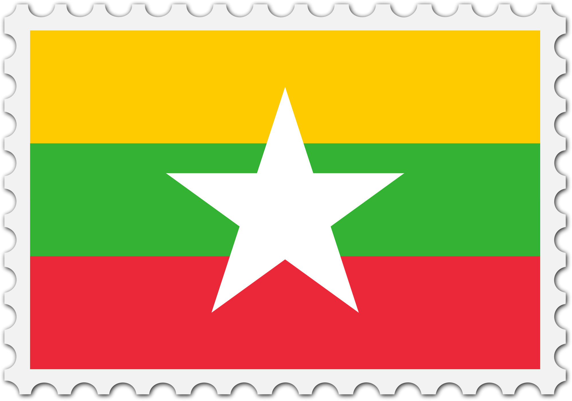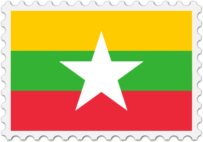 The national flag of Myanmar with a postage stamp border
