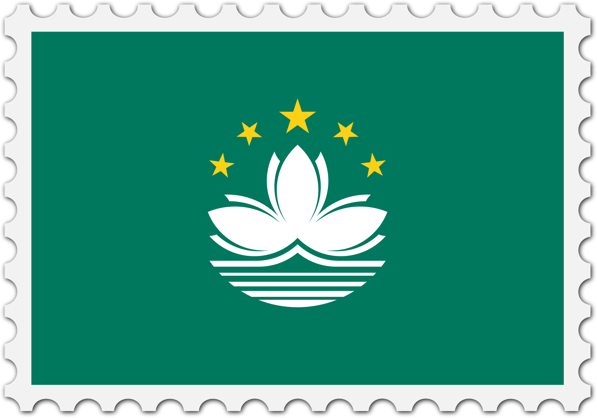 The national flag of Macau with a postage stamp border
