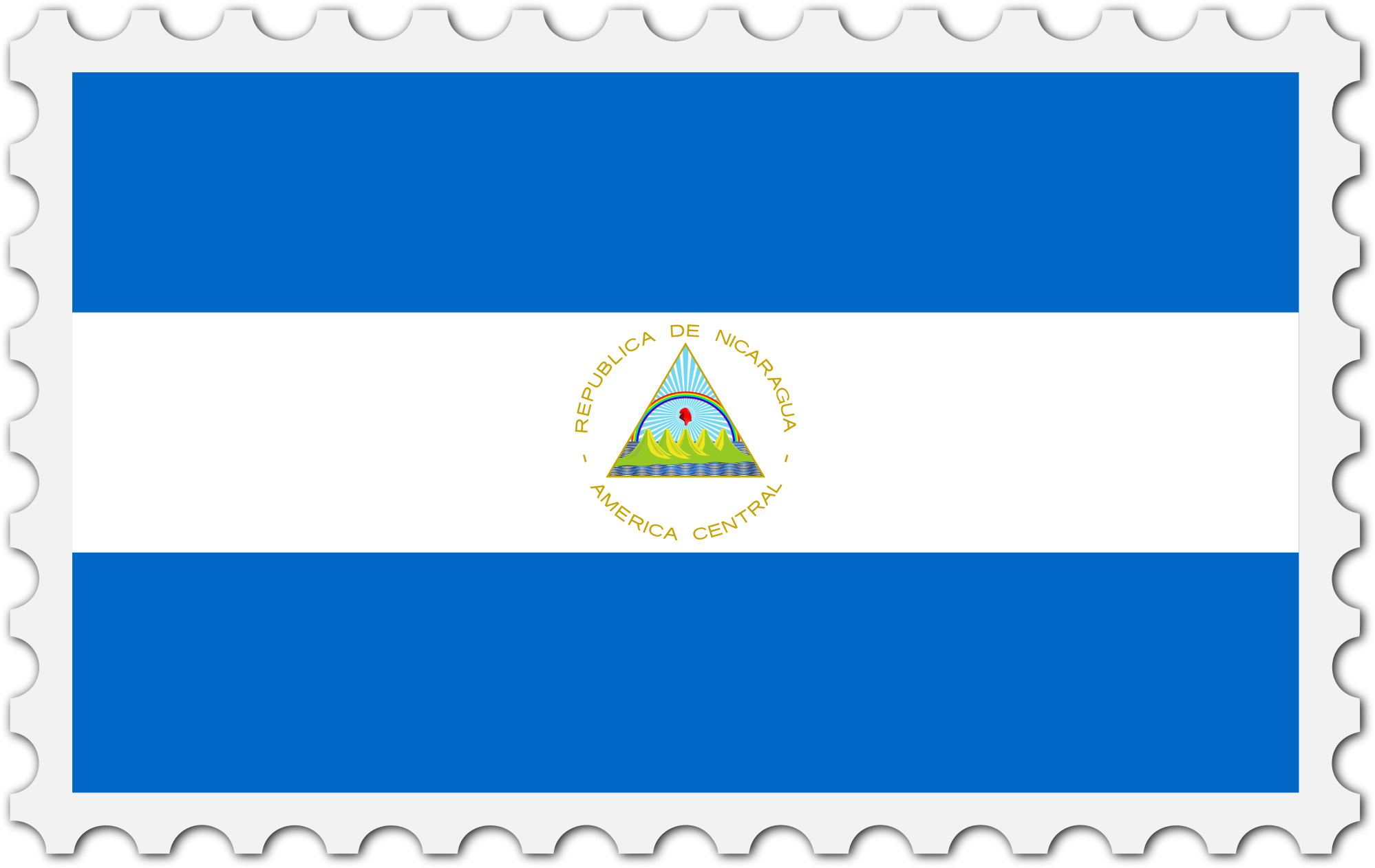 The national flag of Nicaragua with a postage stamp border
