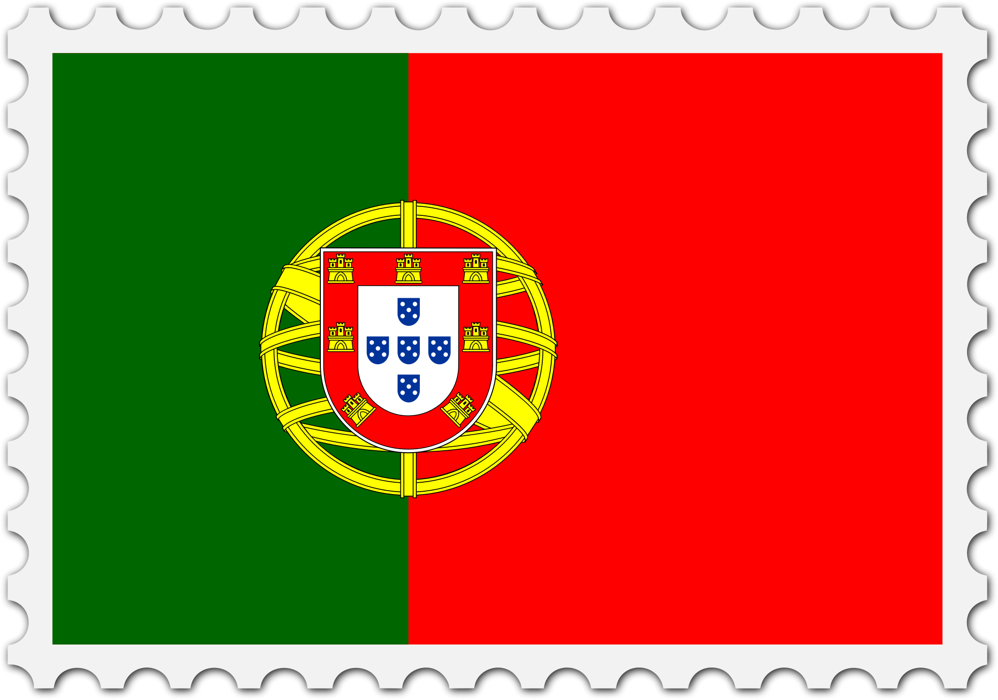 The national flag of Portugal with a postage stamp border