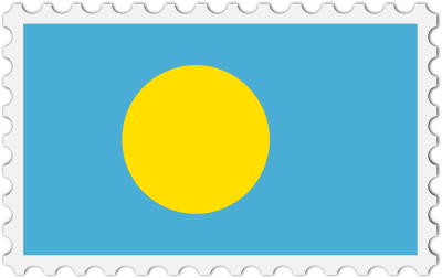 The national flag of Palau with a postage stamp border