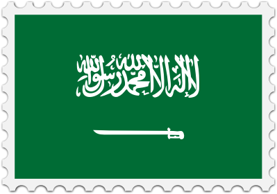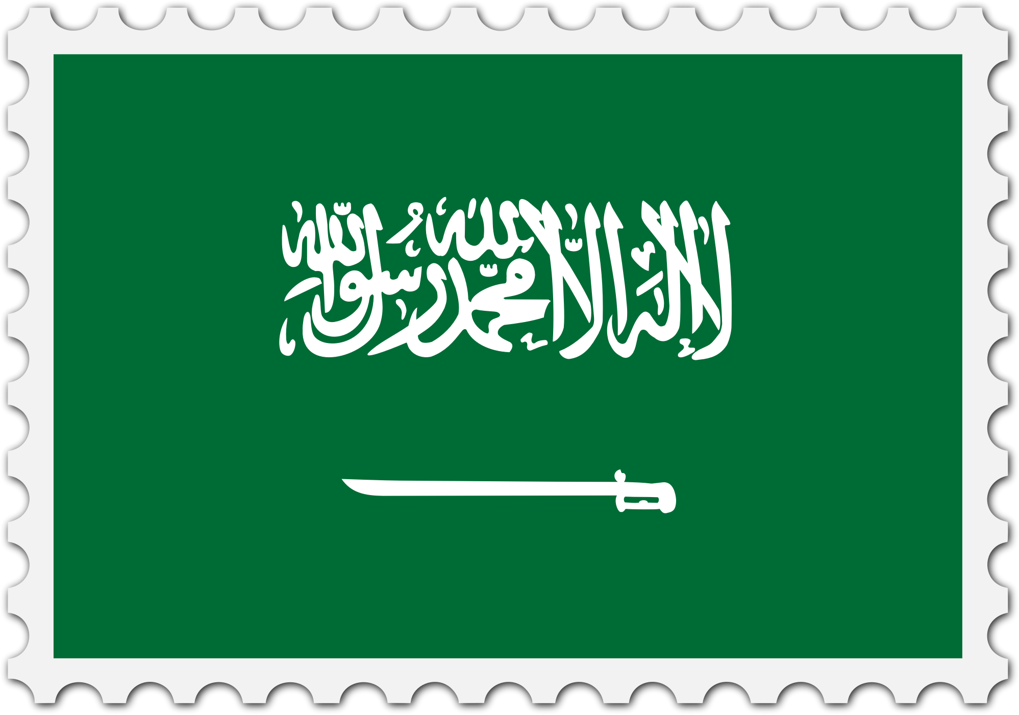 The national flag of Saudi Arabia with a postage stamp border