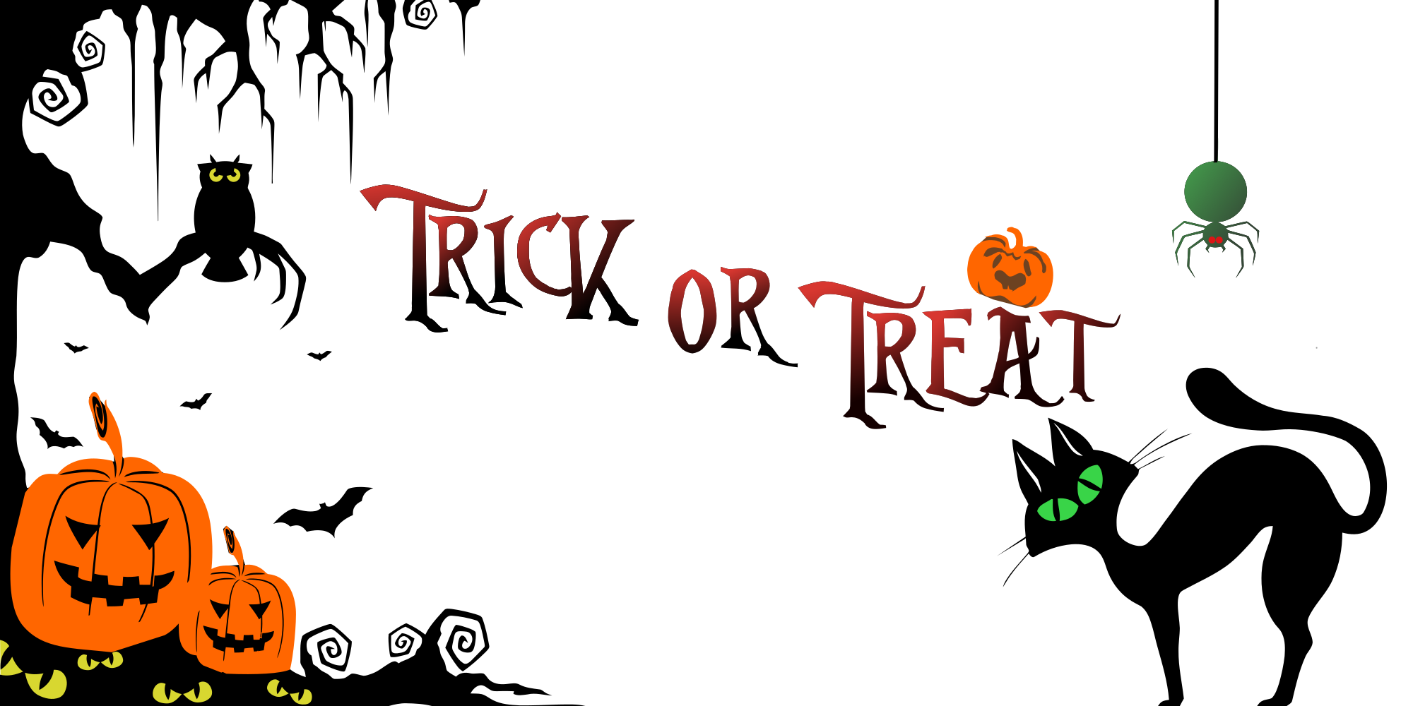 - remix+233775 Bat Black Cat Halloween Jack 'O Lantern Jackolantern Pumpkin Scary creepy outline Spider Text Trick Or Treat Typography English holiday colourful colorful jack-o-lantern trick or treat