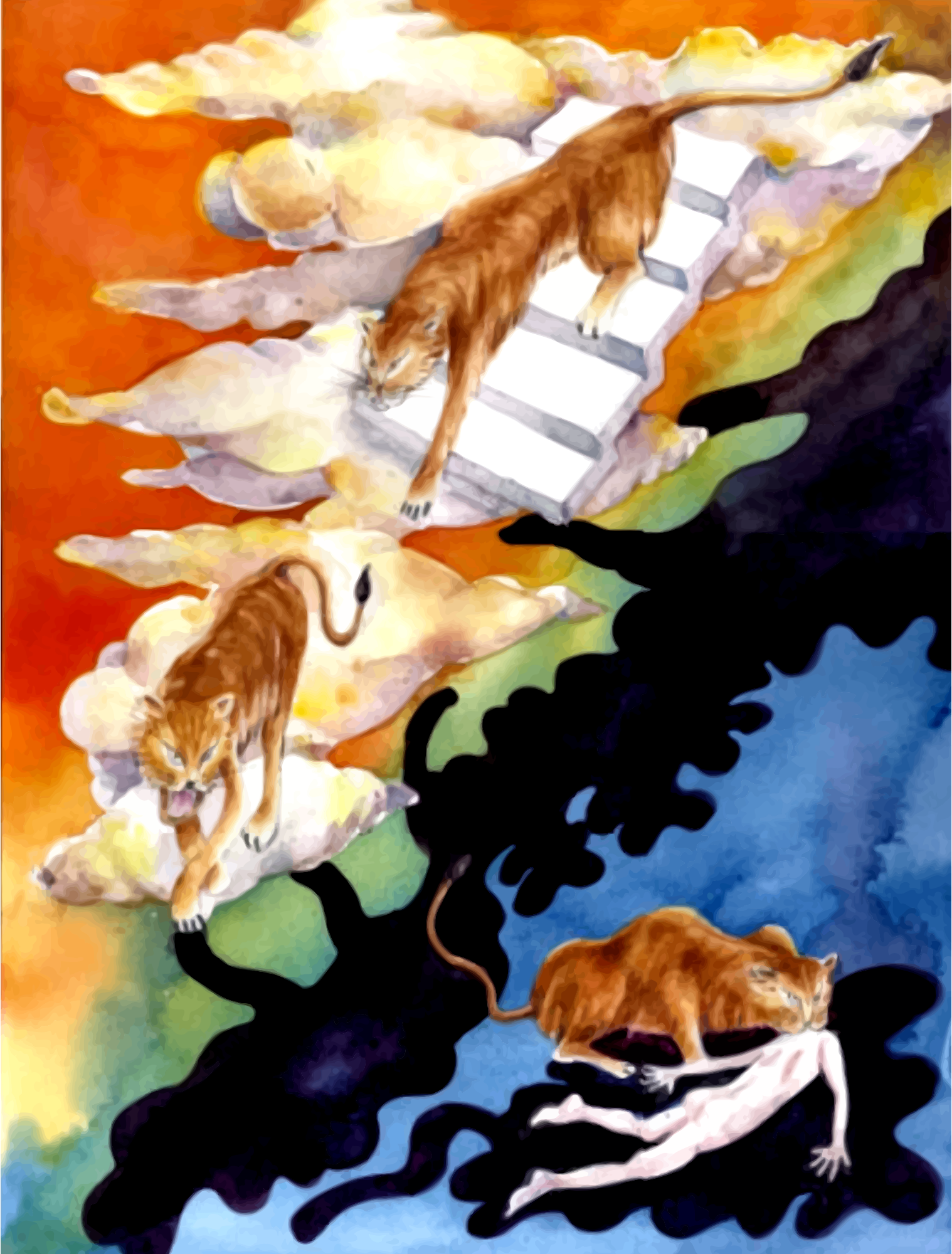 - remix+288394 evil tiger cat killing death watercolour watercolor painting