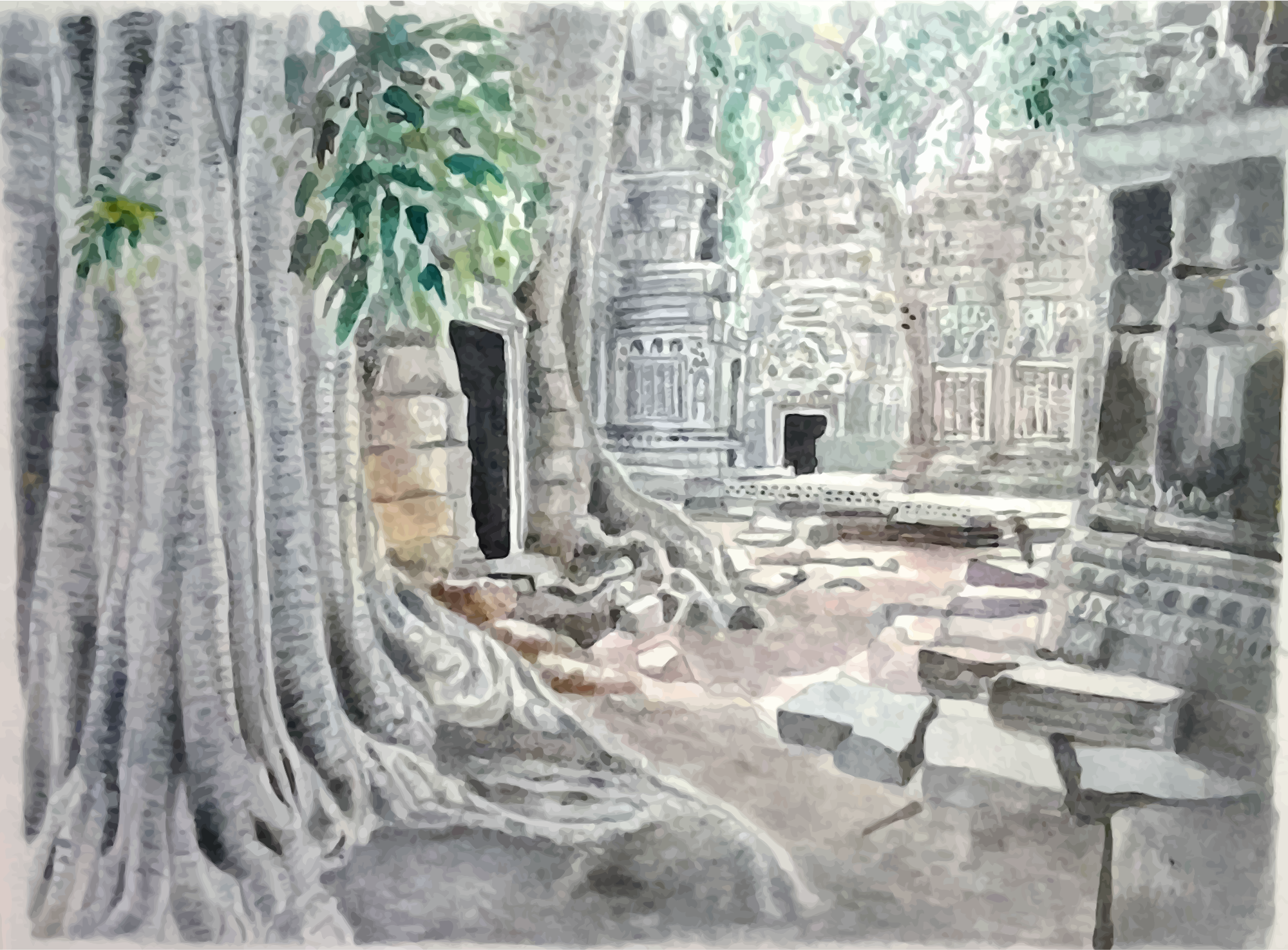 - remix+288413 architecture watercolour watercolor painting Buddha Buddhist Cambodia Cambodian monument religion religious temple