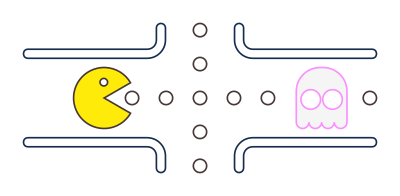A Pac Man, eating bullets in a labyrinth, trying to avoid the ghosts.